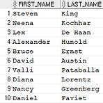 1. 연결 연산자 ▶ 연결 연산자 ( || ) 는 shift + \ 로 나타낼 수 있다. select [칼럼명 1] || [칼럼명 2] from [테이블명]; 연결 연산자 ( || ) 양쪽의 열이 결합되어 단일 열을 출력한다. select first_name || last_name from employees; → ▶ 연결 연산자 사용 전 ▶ 연결 연산자 사용 후 2. 리터럴 문자열 ▶ 날짜 및 문자 리터럴은 반드시 작은 따옴표(' ')로 묶어야 하지만 숫자 리터럴은 그럴 필요가 없다. select first_name || ' ' || last_name from employees; 두 열의 구분을 위해 두 열 사이에 작은 따옴표(' ')로 묶어준 공백을 추가한다. select first_name || ' ..